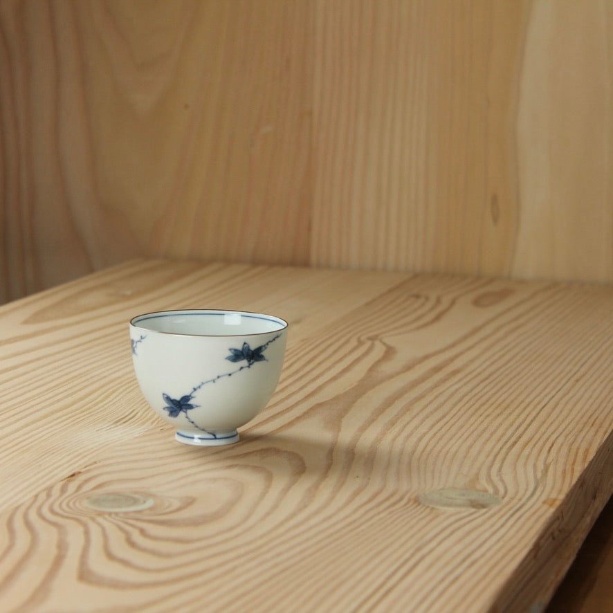 Momiji is the Japanese name for Japanese maple tree leaf, the motif on this cup associated with autumn.